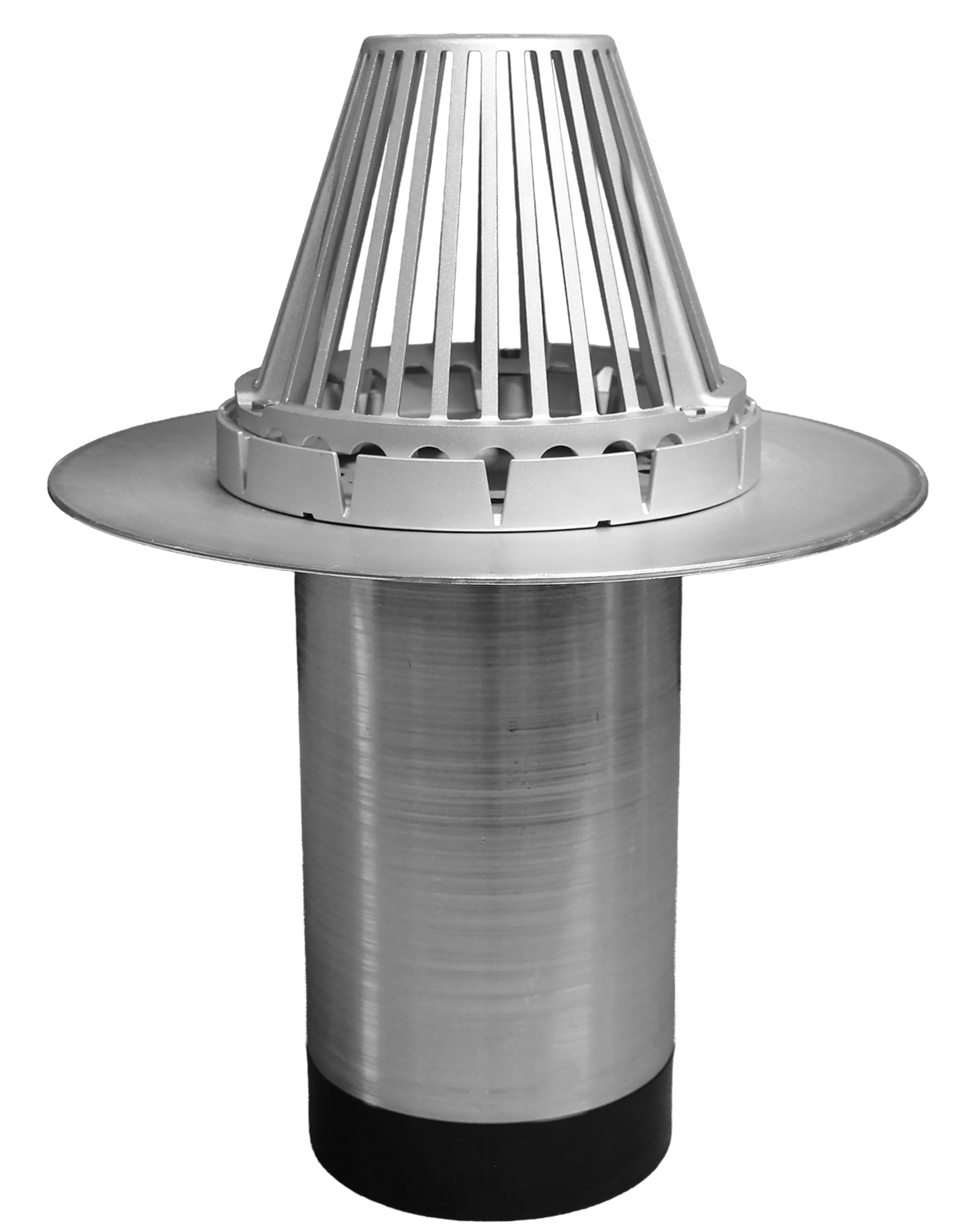 The 8'' ProMaxx Aluminator is a spun aluminum retrofit roof drain with aluminum clamping ring (standard) and and aluminum strainer (standard) with expanding tape to help prevent backflow
